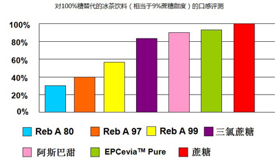在EPCeviaTM Pure的基础上, 可以开发出无糖的冰茶饮料(相当于9%的蔗糖甜度)。 |